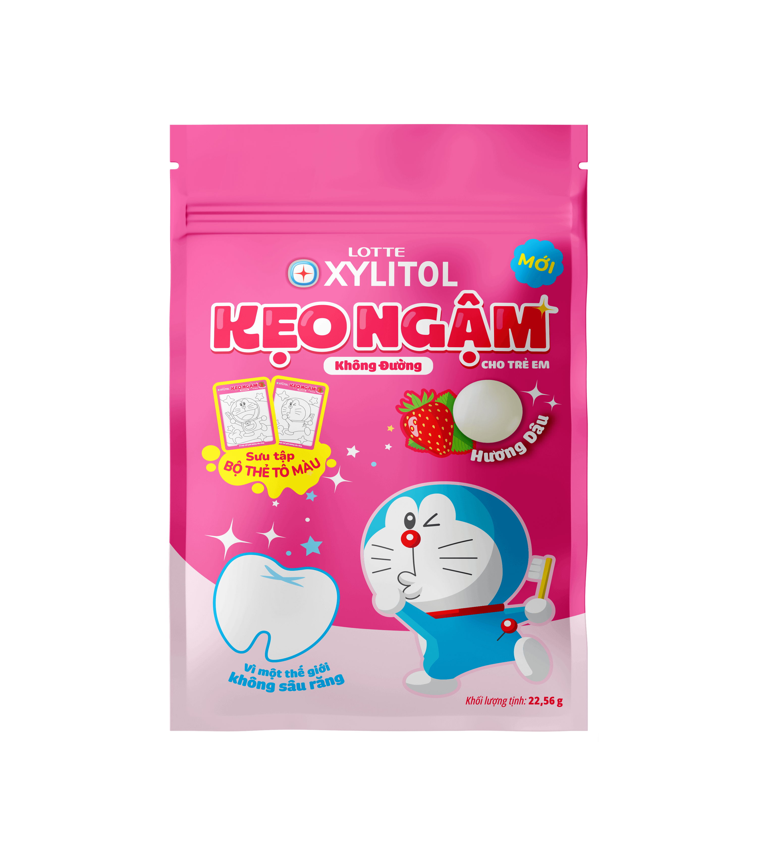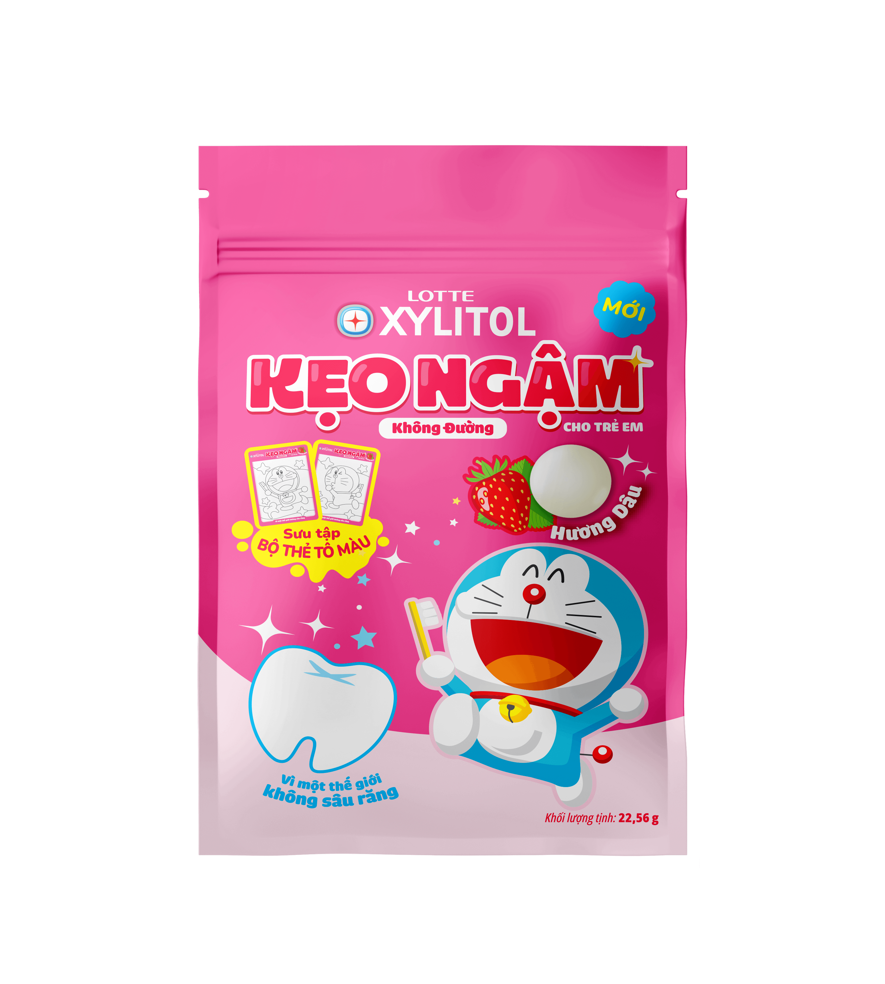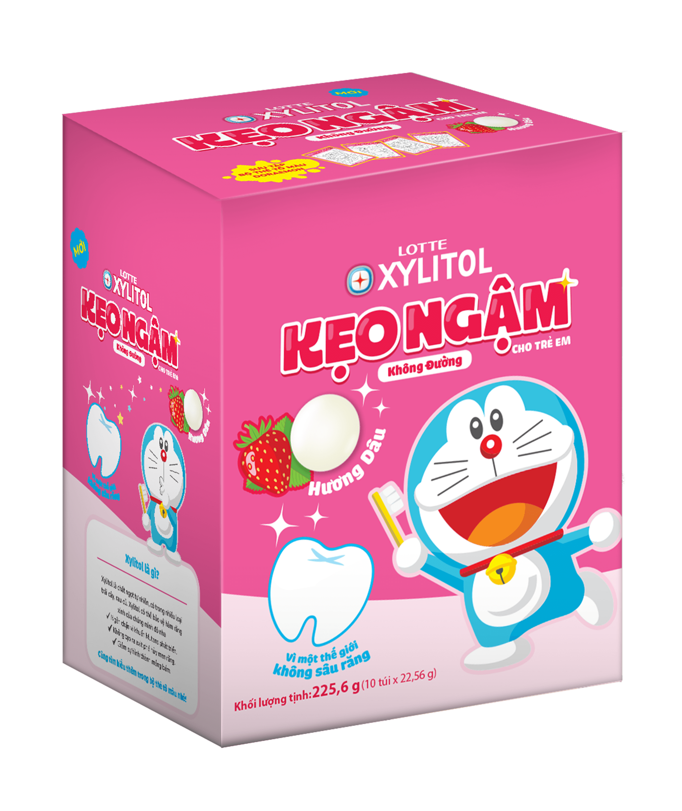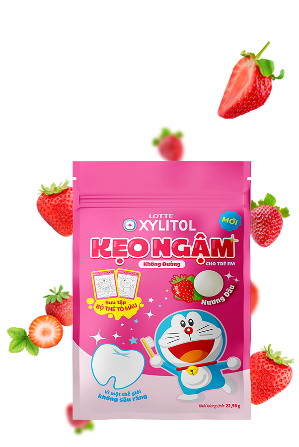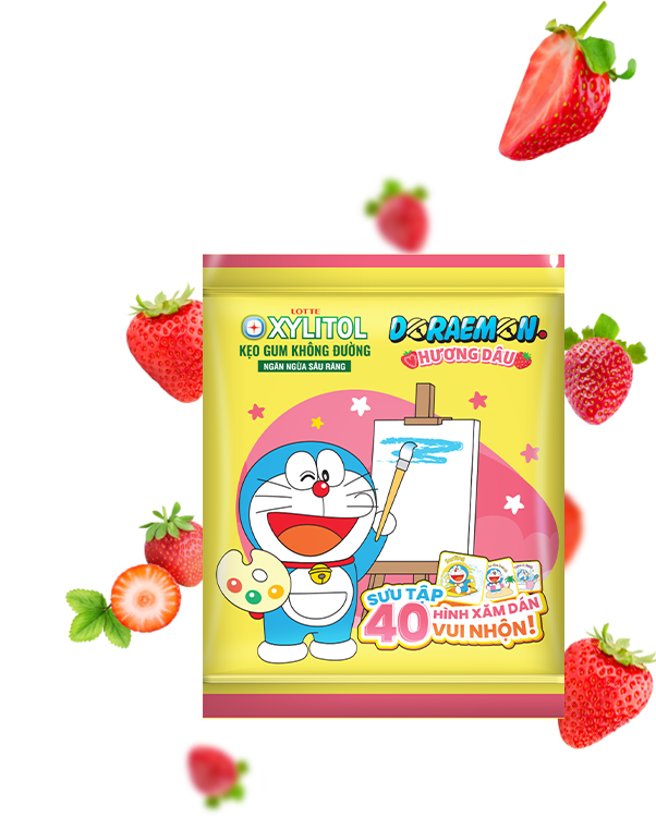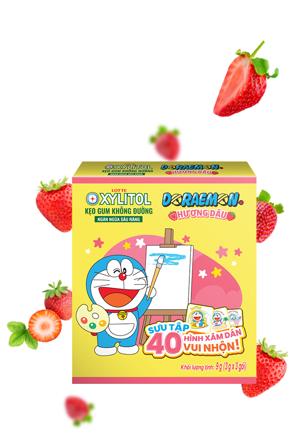 Sweet strawberry flavor without mint’s cooling taste, with adorable Doraemon figures.