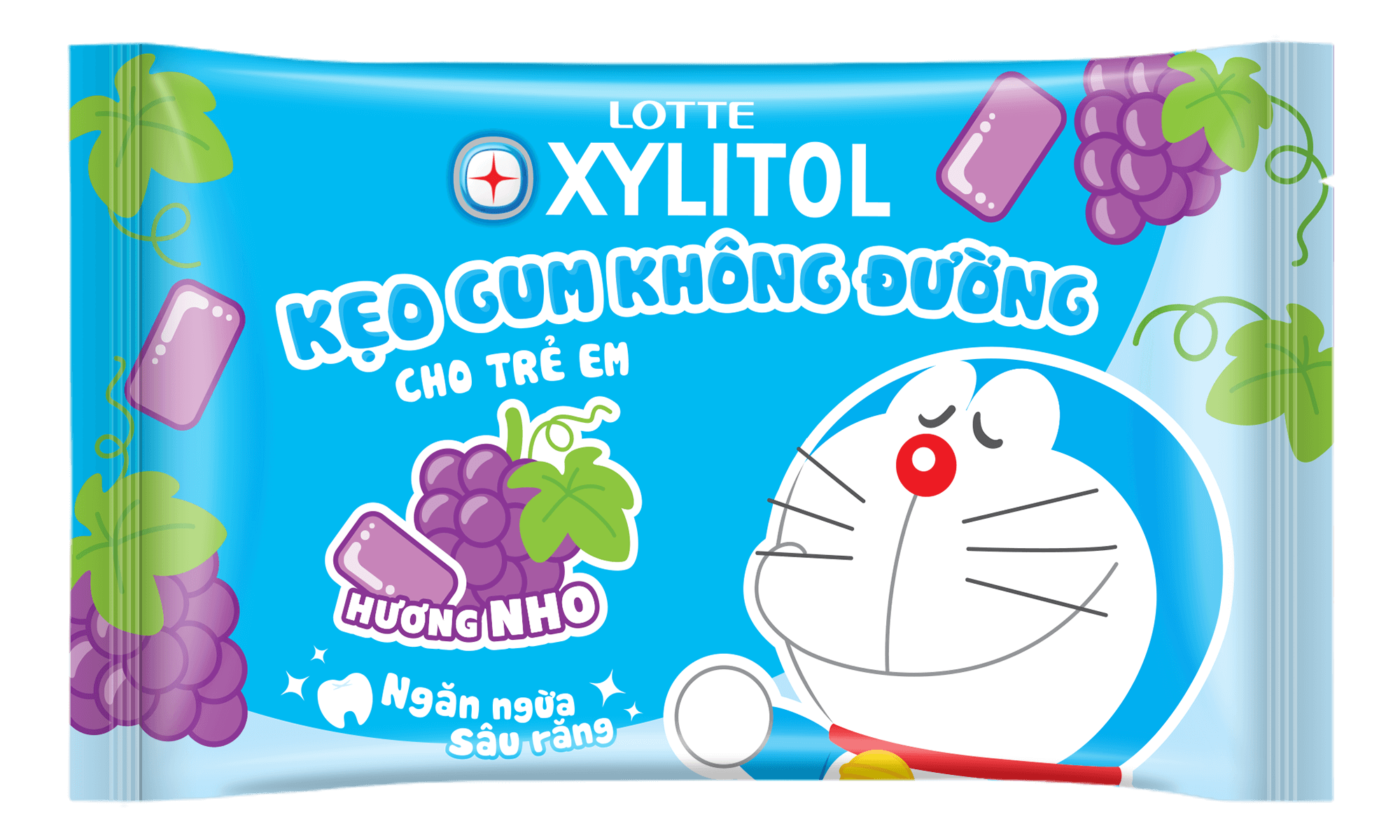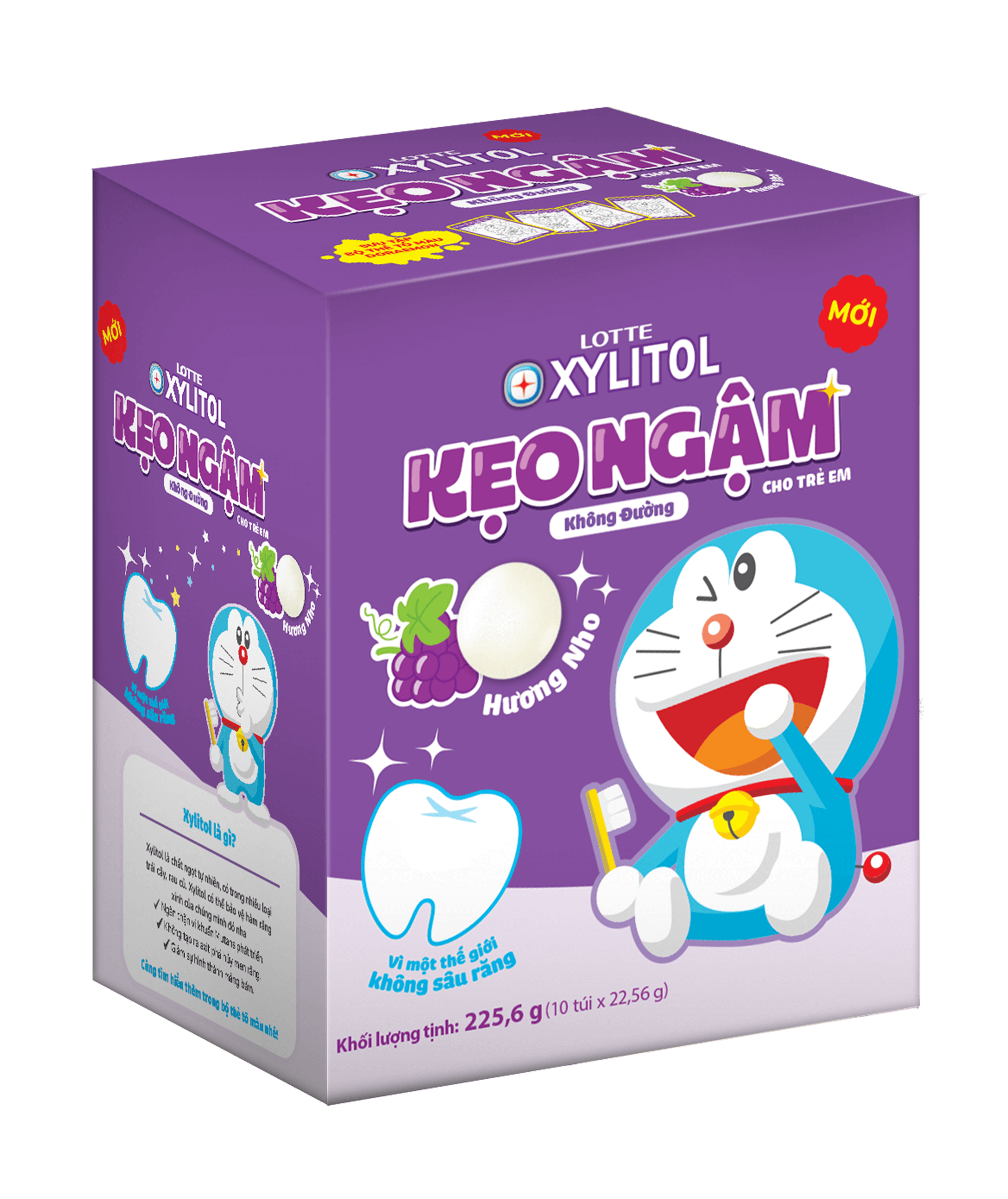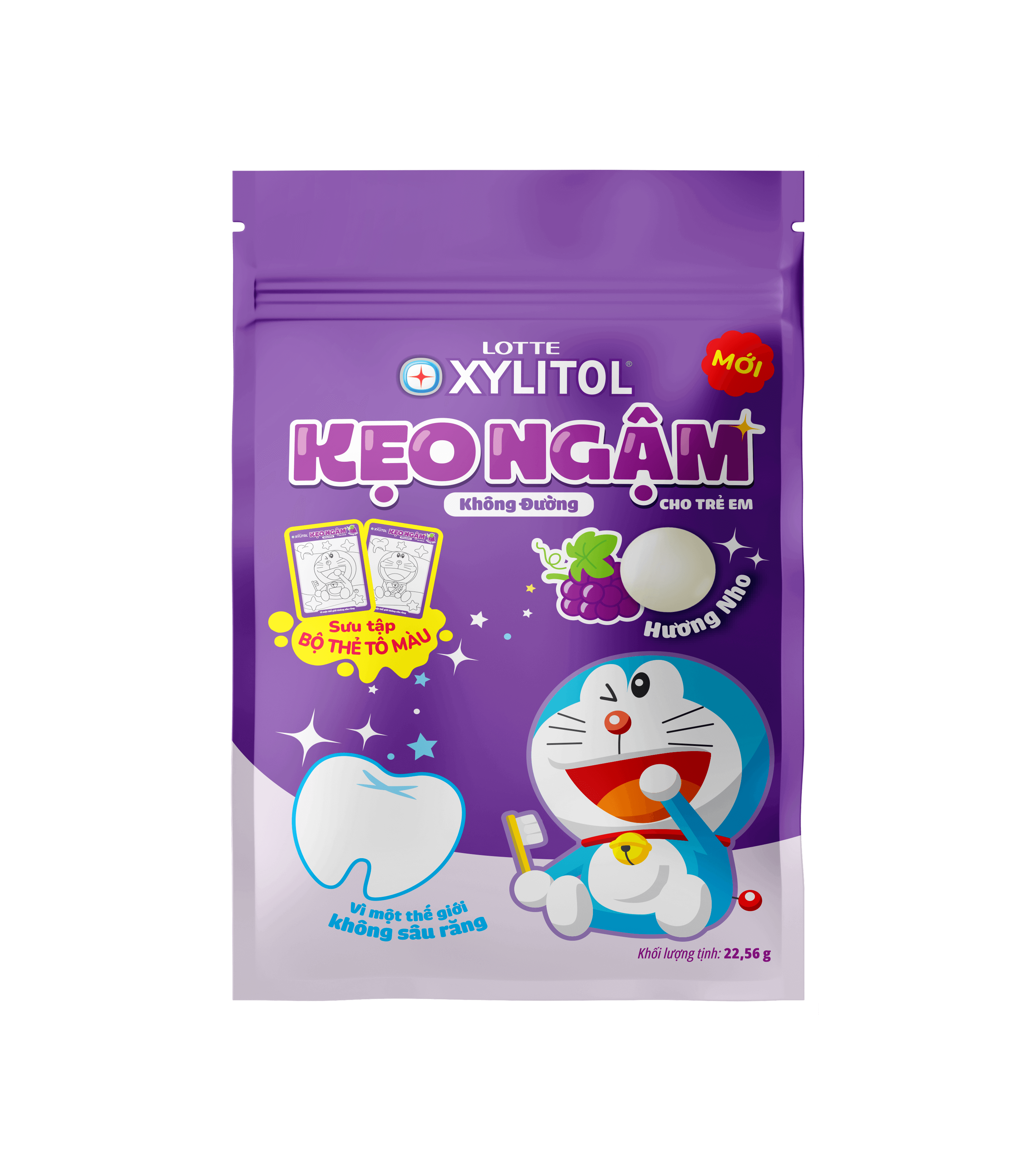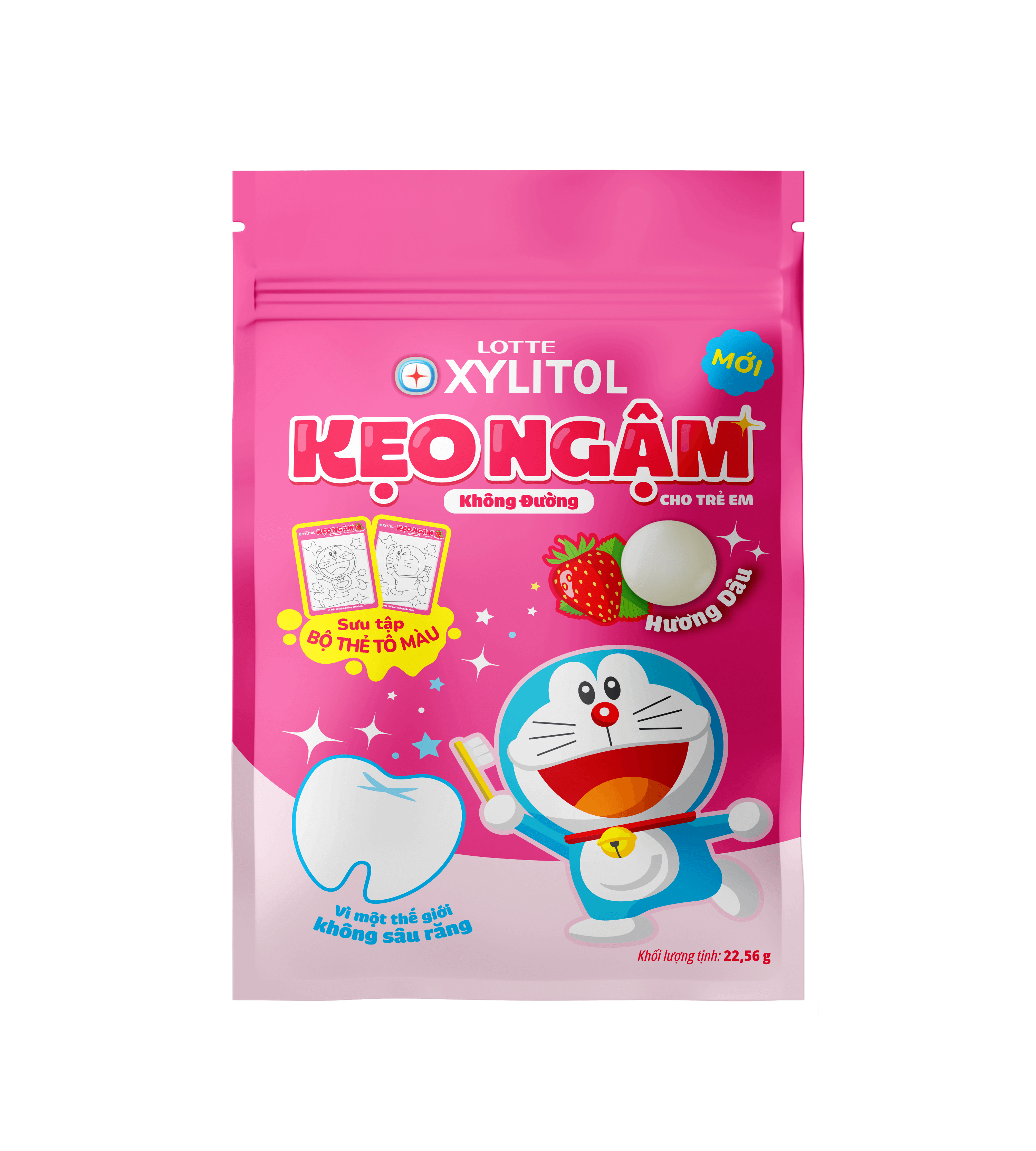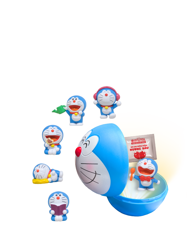 Sweet strawberry flavor without mint’s cooling taste, with adorable Doraemon figures.