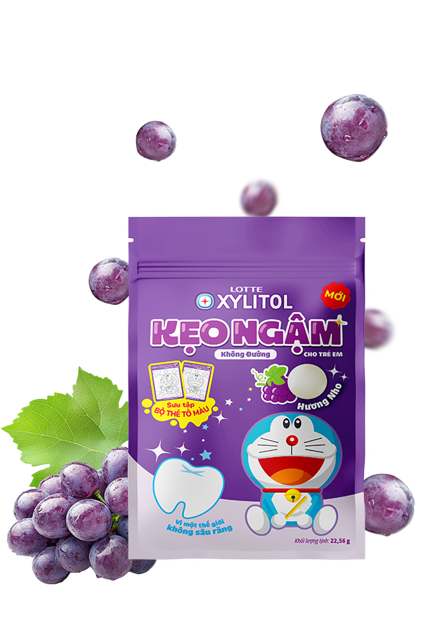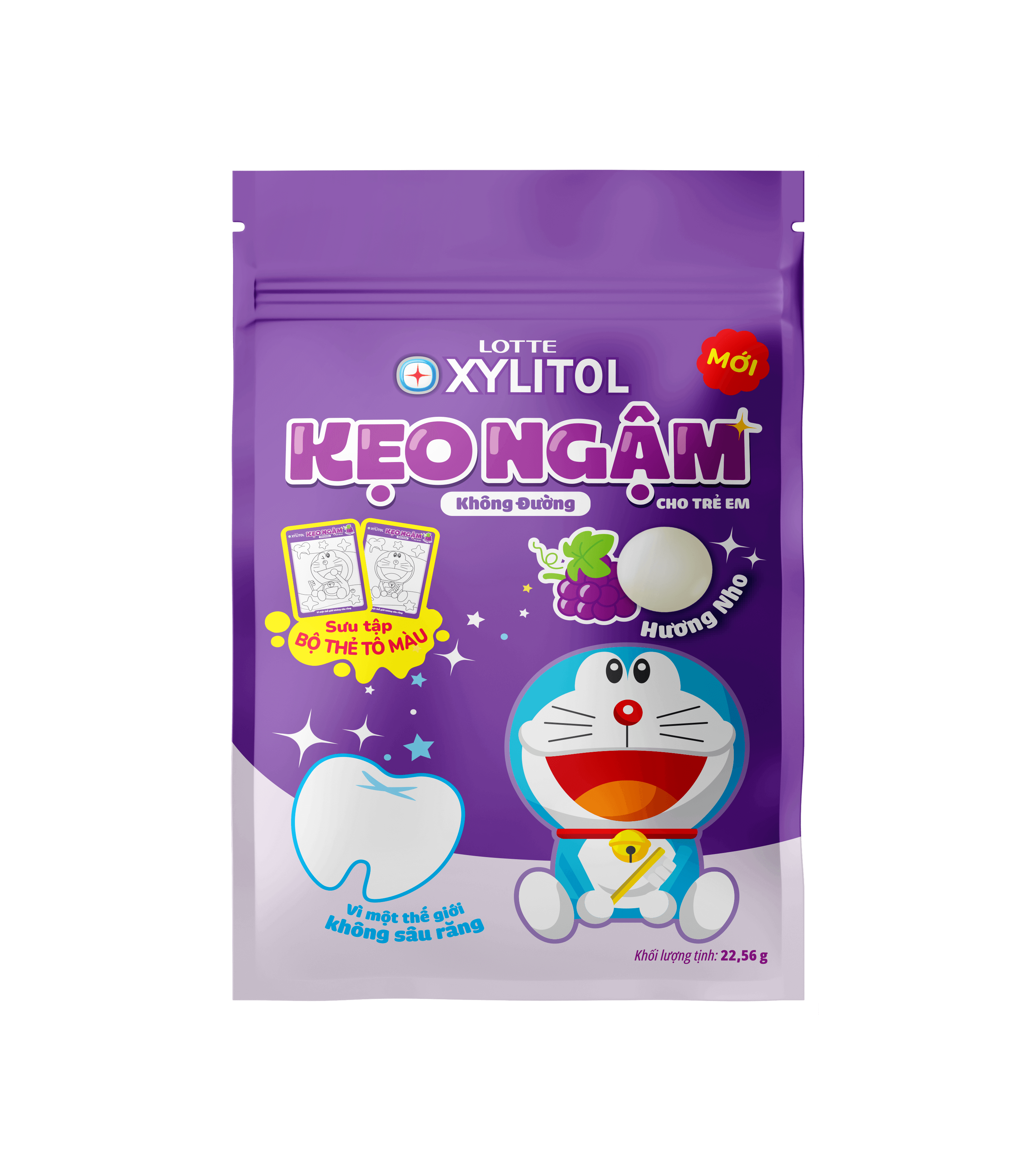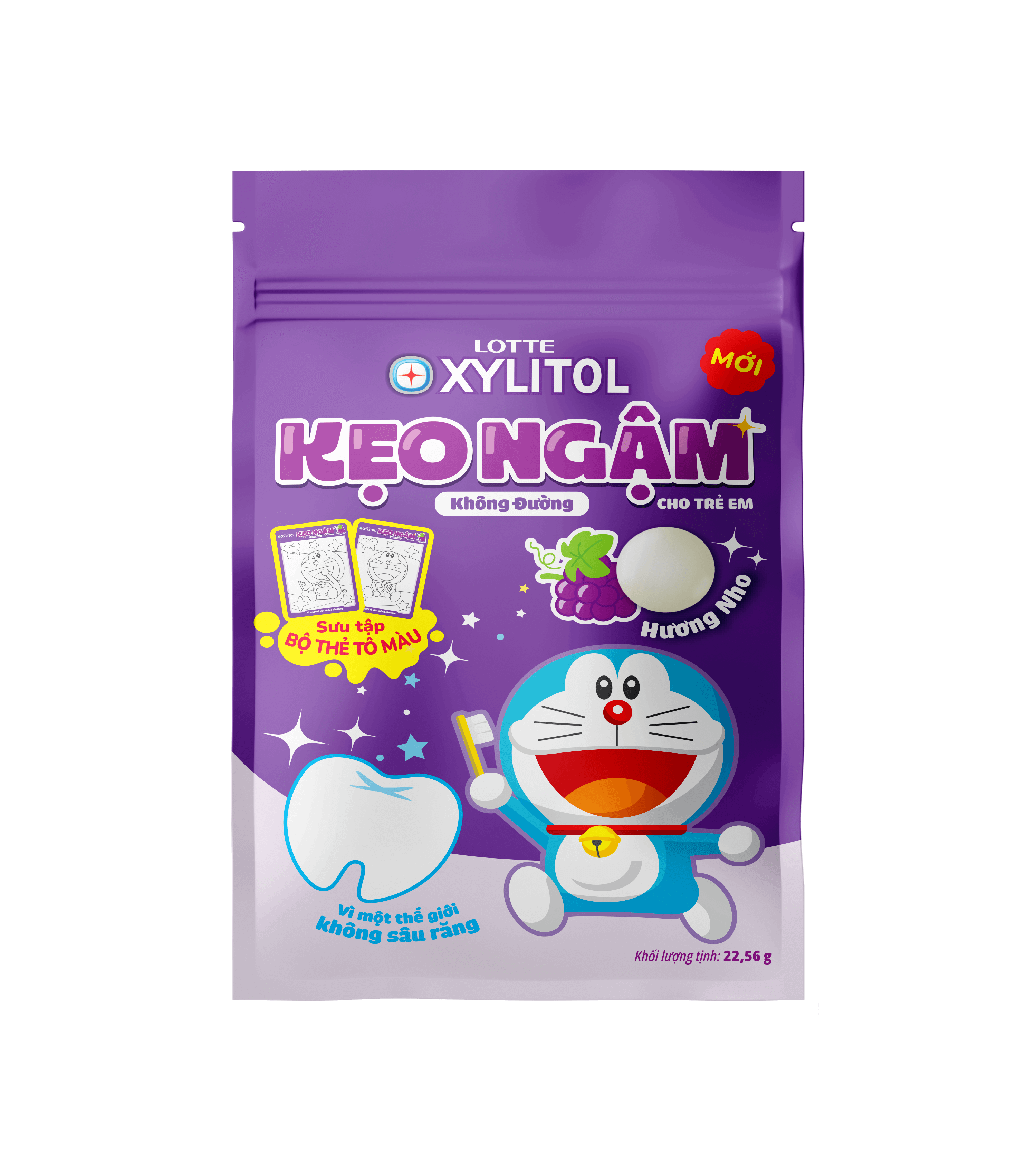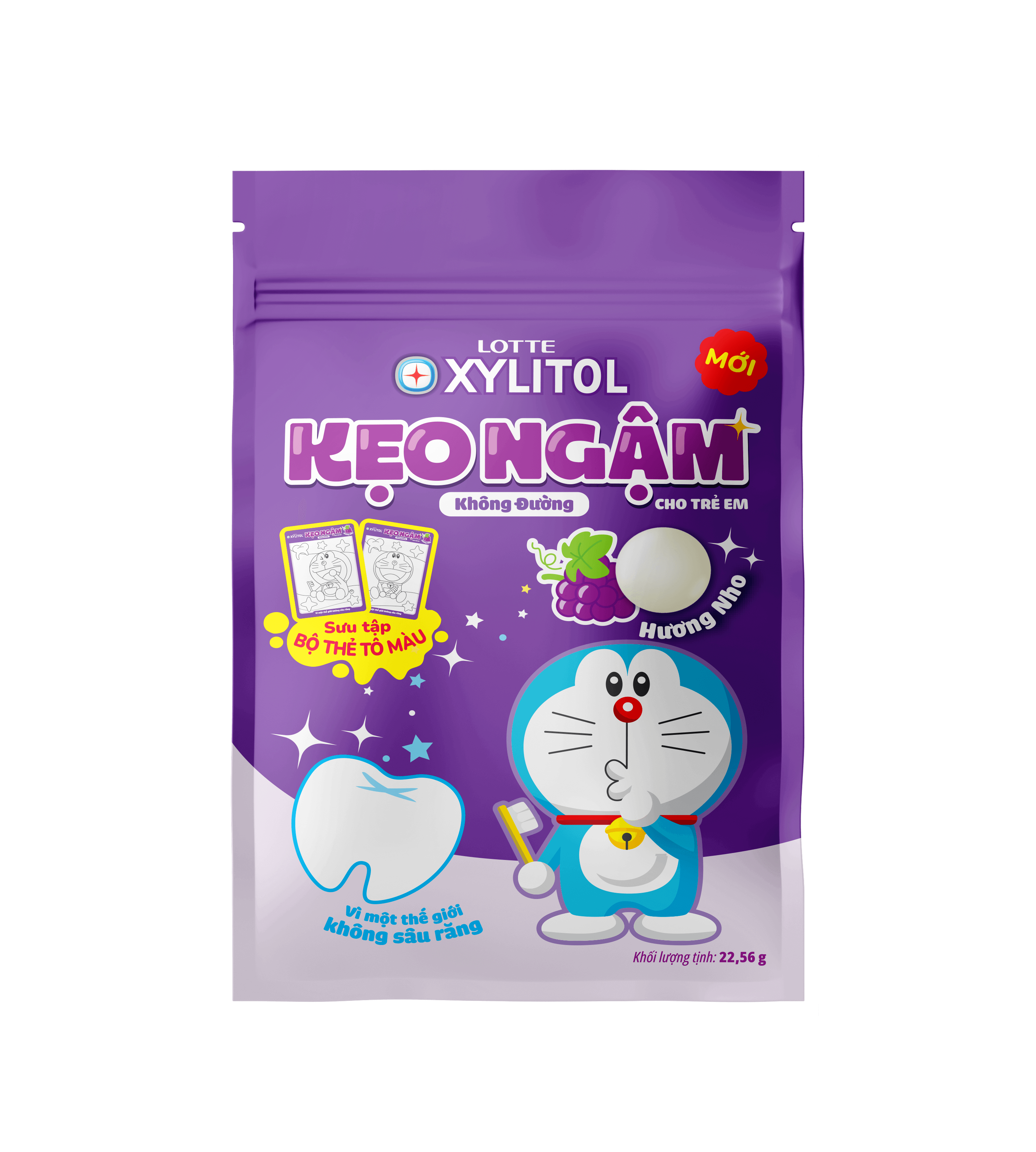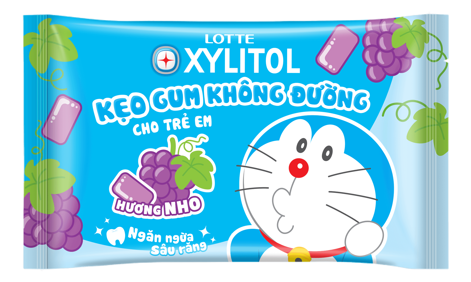 Sweet strawberry flavor without mint’s cooling taste, with adorable Doraemon figures.