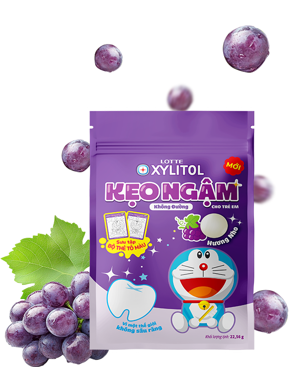 Sweet grape-flavored gum without mint’s cooling taste– easy to enjoy and loved by kids.